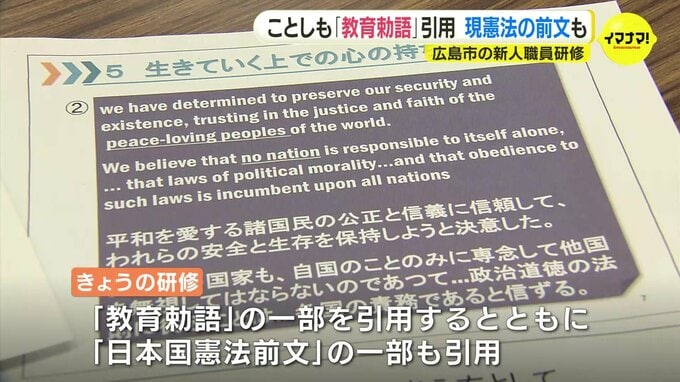 広島市職員の新人研修をめぐっては、松井市長が就任以来、続けてきた「教育勅語」の引用に対し、被爆者団体や弁護士会などから中止を求める声が上がっています。