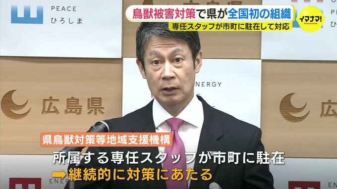鳥獣被害対策で全国初の組織 専任スタッフが市町に駐在して対応 広島県 2024年4月9日(火) 15:31 国内 広島県は9日、農作物への鳥獣被害が続く中、対策にあたる専任のスタッフを市町に置いて全県的に対応する全国初の組織が稼働を始めたと発表しました。広島県 湯崎英彦 知事「農業者の意欲にも関わることであるし、…
