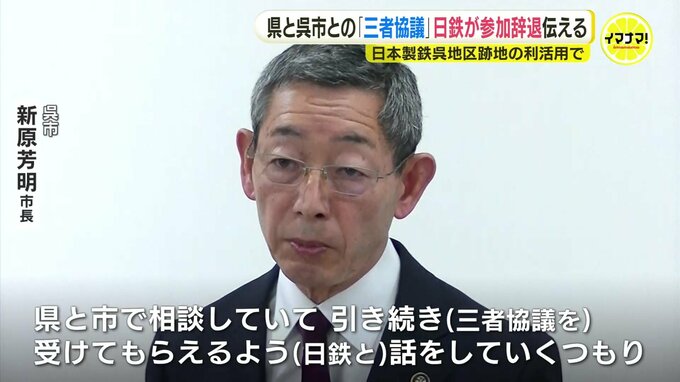 日本製鉄呉地区跡地の利活用についてです。広島県が呉市と日鉄との間で開催を予定していた「三者協議」について、日鉄が参加を辞退すると伝えていたことが分かりました。
