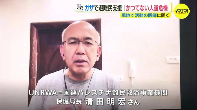 ガザの支援を担っているUNRWA(国連パレスチナ難民救済事業機関)の保健局長・清田明宏 さんは、先月20日、ガザ地区に入り、住民への支援を続けています。