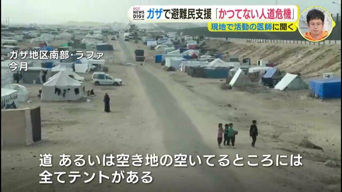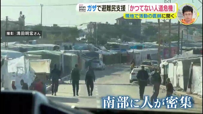 清田さん「私が入ったのはガザの南のラファっていうところなんですけれども、大量に人がいて大量にテントがいて、避難所もいっぱいで、道あるいは空き地の空いてるところには全てテントがある、そういう感じですね」
