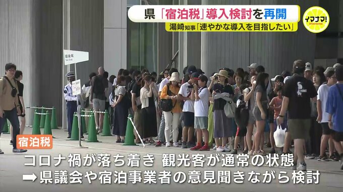 コロナ禍が落ち着き、観光客が通常の状態に戻っていることもあって、今後、導入に向け県議会や宿泊事業者の意見も聞きながら具体的な検討を進めていきたいとしています。
