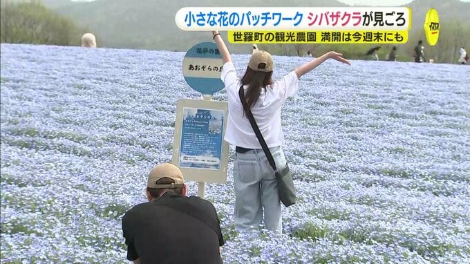 こちらの農園では約100万本のネモフィラも見ごろとなっています。ネモフィラは5月上旬まで見ごろが続くということです。
