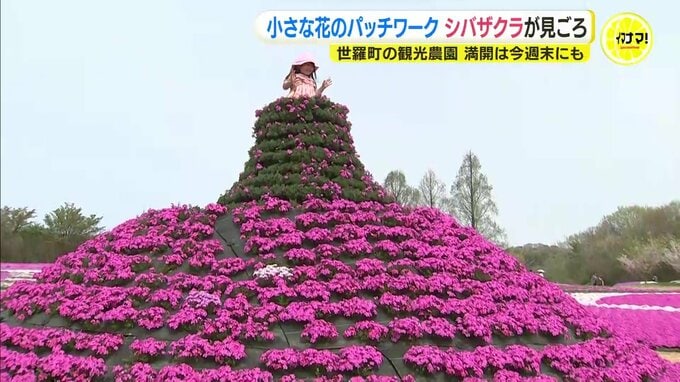 赤やピンクに白―。小さな花がパッチワークのように大きな模様を作り出しています。世羅町にある「フラワービレッジ花夢の里」では、約45万株のシバザクラが現在、八分咲きで見ごろとなっています。今週末には満開を迎えそうです。