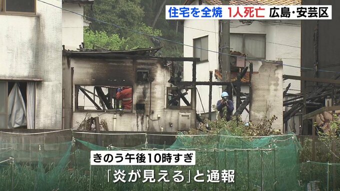 広島市で20日、住宅1棟が全焼する火事がありました。焼け跡から1人の遺体が見つかり、警察が身元の確認を進めています。