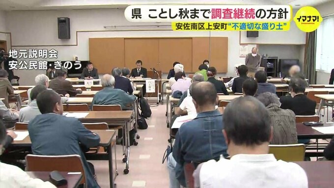 広島市安佐南区にある、不適切な盛り土の安全性に関する調査結果が、住民に報告されました。広島県は、2024年秋まで調査を継続する方針を示しました。