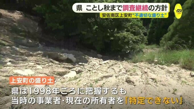 広島市安佐南区上安町にある盛り土は、1998年ごろに県が把握したものの、当時の事業者も現在の所有者も「特定できない」状態となっていて、盛り土の一部には産業廃棄物の最終処分場が広がっています。