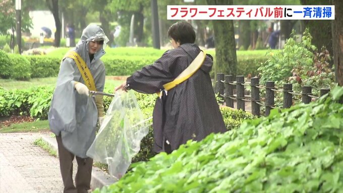 一斉清掃には、有志の企業やボランティア団体などが参加しました。「ひろしまフラワーフェスティバル」に向けた清掃活動は、訪れる人たちに気持ちよく過ごしてもらおうと、2014年から実施されています。