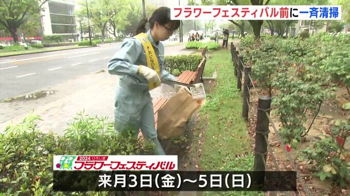来月、開催される「ひろしまフラワーフェスティバル」に向け、平和大通りなどで一斉清掃が行われました。