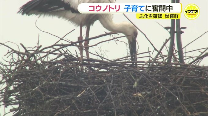 コウノトリが、産んだ卵を温める様子が確認されて1か月以上が経ちました。2023年、県内で初めて繁殖に成功したコウノトリが、ことしも同じ電柱の上に設けた巣…。