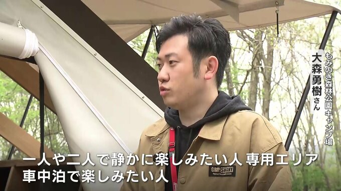 「1人とか2人とか静かに過ごしたい人のための専用のエリアを作ったり、車中泊で楽しみたい人とか多様化したアウトドアスタイルに対応できるキャンプ場、みなさんに愛されるキャンプ場を目指してがんばりたいと思います」