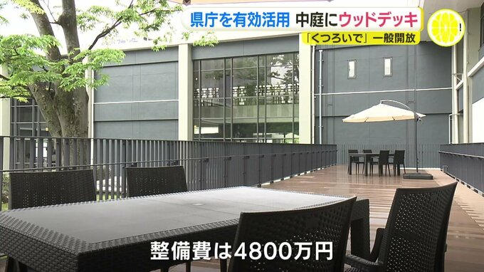 広島県庁の敷地を有効活用するリニューアル事業で、中庭に再生材を使ったウッドデッキが整備され、1日、一般開放されました。