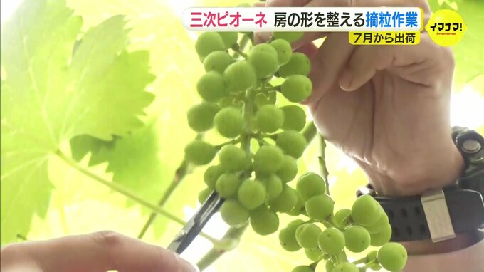 7月には「黒い真珠」 三次ピオーネの房の形を整える作業 2024年5月14日(火) 17:06 国内 話題・グルメ 広島県三次市で、特産のピオーネの、房の形を整える作業が行われています。20戸の農家でつくる三次ピオーネ生産組合では、先月末からハウスものピオーネの摘粒作業が行われています。ブドウの実が大きくなるこの時…