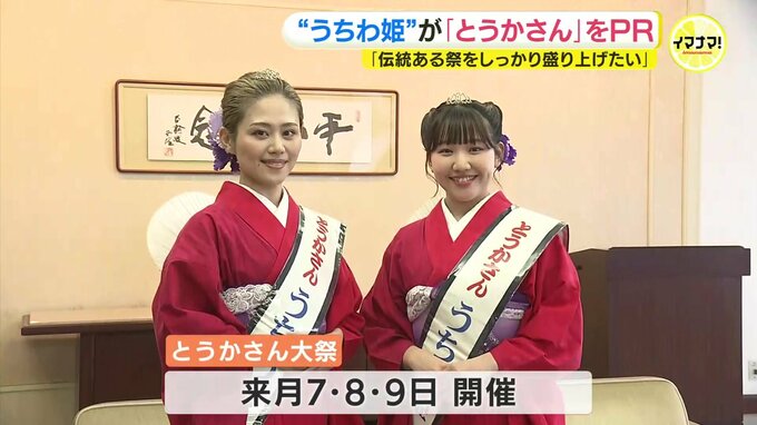 夏の訪れを告げる祭り「とうかさん」 うちわ姫がPR 広島 2024年5月16日(木) 18:47 国内 話題・グルメ 6月、広島市で開催される「とうかさん」を盛り上げようと、「うちわ姫」の2人が広島市役所を訪れ、祭りをPRしました。広島市の松井市長を訪ねたのは、ことしのうちわ姫に選ばれた2人です。2人は、6月のとうかさん…