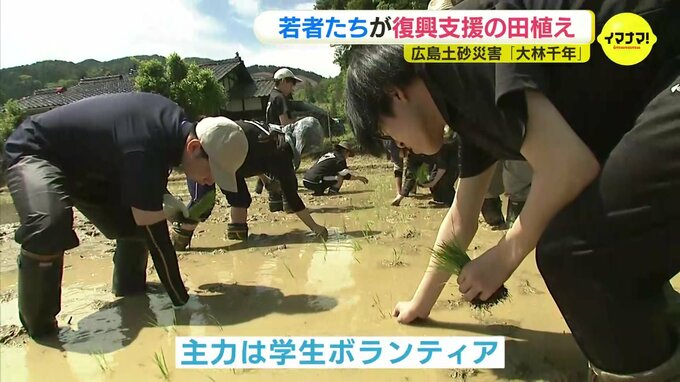 10年前に土砂災害があった広島市の山間の集落で若者たちがコメを作り、復興支援の酒を造っています。その田植えが行われました。