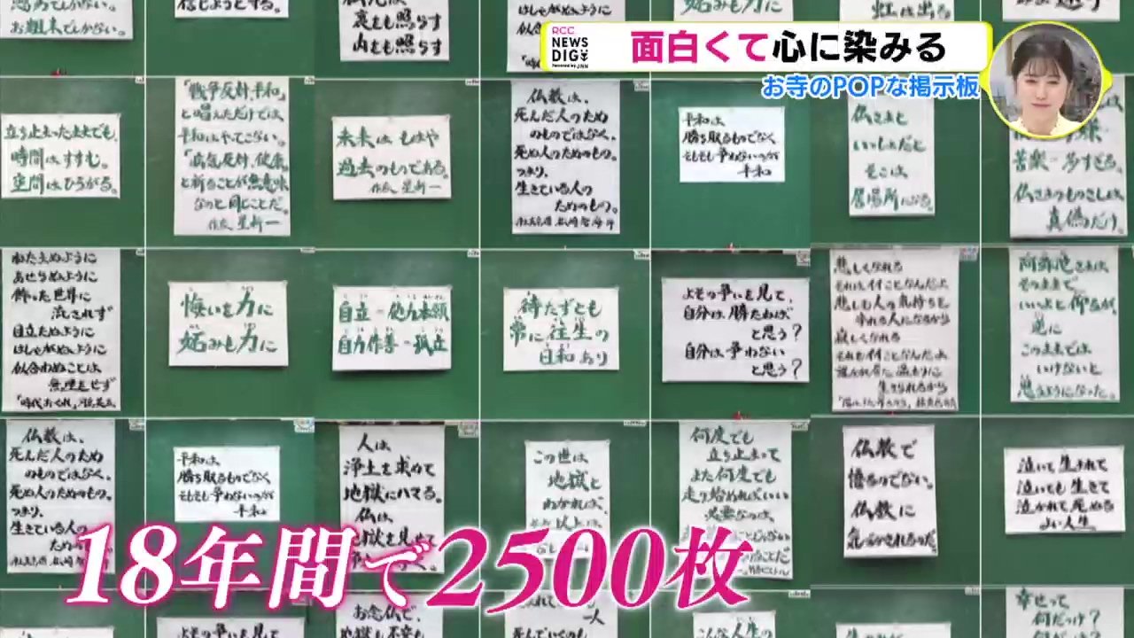 ― 和田住職によりますと、だいたいのお寺が月に1回、掲示板を貼り替えるそうです。ですから超覚寺の「毎日貼り替え、しかも1日2枚」というのは非常にひん度が高いといえます。