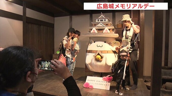 広島城では、開館記念日に合わせて天守閣が無料開放され、多くの人が訪れました。広島城のキャラクター「しろうニャ」との記念撮影や、オリジナルの御城印を作れるとあって人気を集めていました。