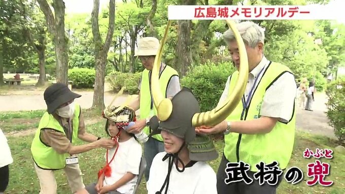 「(兜が)重たい。息子が城めぐりをしていて、広島城に来た」