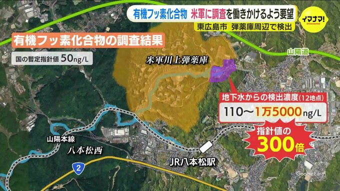 広島県東広島市にあるアメリカ軍川上弾薬庫周辺の地下水から人の健康に影響を及ぼす可能性が指摘されている有機フッ素化合物が、高い濃度で検出された問題で、市長らが、弾薬庫内をアメリカ軍に調査してもらうよう防衛省に要望しました。