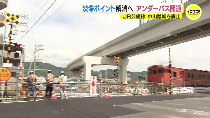 広島市でも有数の渋滞ポイントで、原因となっていた踏切がついに廃止です。JR芸備線・中山踏切周辺の渋滞を解消するためのアンダーパスが6日、開通しました。