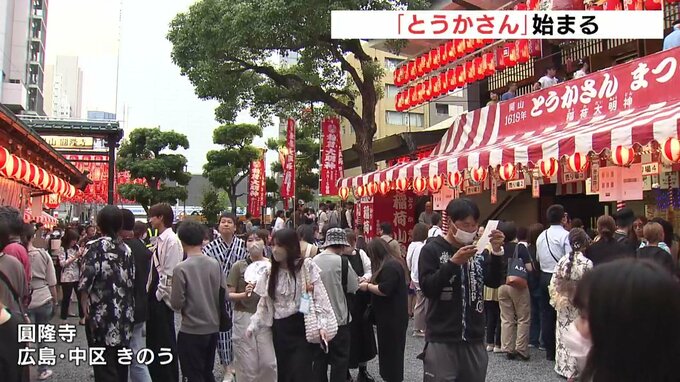 広島の夏の風物詩「とうかさん」始まる 境内には500個の提灯 「ゆかたできん祭」も同時開催 2024年6月8日(土) 12:23 国内 話題・グルメ 広島に夏の訪れを告げる「とうかさん」が7日、始まりました。とうかさんは、広島市中区の圓隆寺で約400年前に始まった祭りです。境内では約500個の赤い提灯が参拝客を迎え入れます。歩行者天国として開放された中…