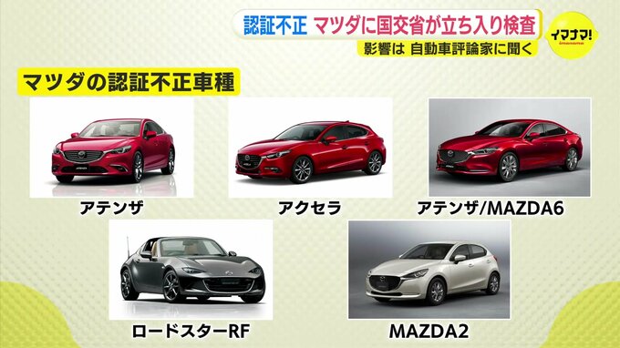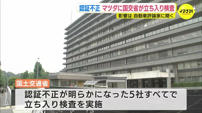 国交省の検査官は、試験データや担当者への聞き取りなどで事実関係を確認するということです。マツダでの認証不正は合わせて5車種、対象車は15万台で、すでに生産が終了しているアテンザやアクセラなど3車種では「衝突試験で試験車両の不正加工」。