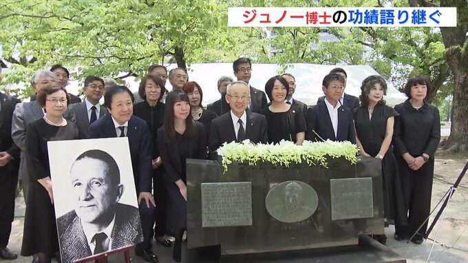ジュノー博士は、終戦直前に赤十字の一員として来日。広島に原爆が投下された後の1945年9月に15トンの医薬品を広島に運び込み、自らも被爆者の治療にあたりました。この行動で1万人以上の命が救われたともいわれていて、1979年には記念碑が建てられました。