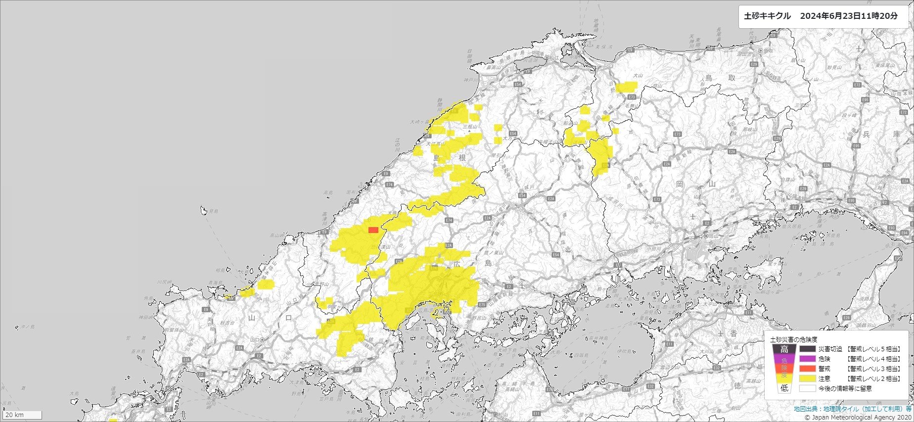 23日午前11時前、広島地方気象台は、広島県の広い範囲に大雨警報(土砂災害・浸水害)を発表しました。対象エリアは以下の通りです。