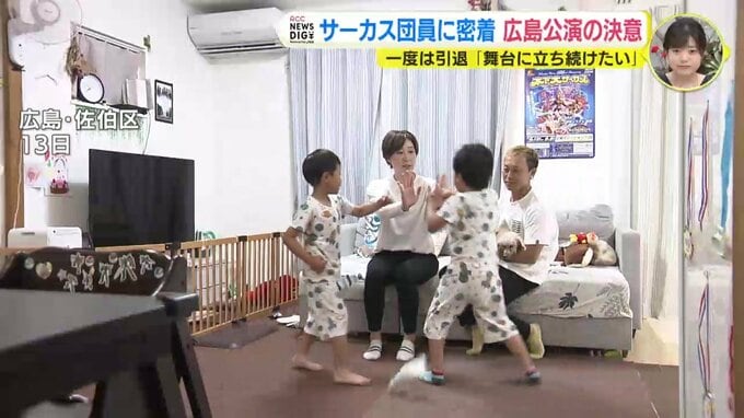 「“サーカスが好き”から入って健太さんと結婚したんです。(家族が)しっかり応援して、1人でも多くの人に感動とかを伝えられたらいい。お父さんの代わりとしては頑張らず、帰ってきたらしっかりお父さんの役目を果たしてもらおうと思ってます」