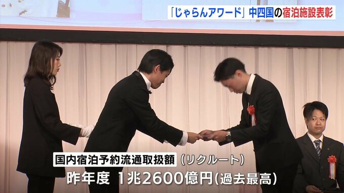 過去最高の1兆2600億円! 急速な旅行需要回復で人手不足も 「じゃらんフォーラム(広島会場)」 2024年6月26日(水) 11:59 国内 大手宿泊予約サイトで顕著な実績をおさめた中四国地方の宿泊施設が、25日表彰されました。宿泊予約サイト「じゃらんnet」を運営するリクルートが、昨年度、利用者から評価が高いなどの実績を残した中四国の宿泊施…