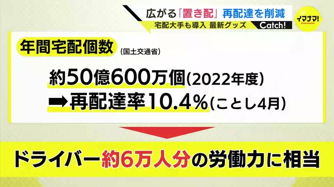 10.4%…。これは宅配便の「再配達率」を示した数字です。国土交通省のまとめでは、年間の宅配便個数は全国でおよそ50億600万個(2022年度)。そして今年4月のデータでは、年間宅配戸数のおよそ1割が「再配達」になっています。