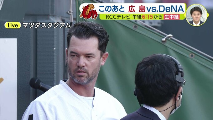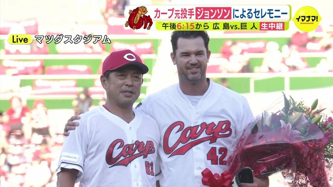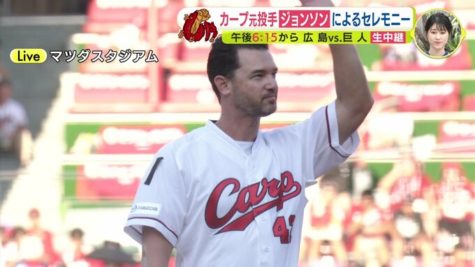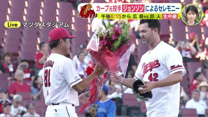 きょうはメモリアルピッチセレモニーということで、2015年から2020年まで6シーズン、このカープで活躍しましたクリス・ジョンソンさんによりますメモリアルピッチが行われます。