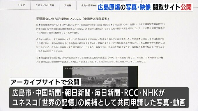 ユネスコ「世界の記録」国際登録目指す 広島原爆の写真・映像閲覧サイト公開 2024年8月3日(土) 18:10 国内 ユネスコの「世界の記憶」の国際登録を目指す、広島の原爆を記録した写真と映像について、広島市と報道機関6者は、インターネットを通して閲覧できるサイトを、公開しました。公開されたのは、1945年末までに広島…