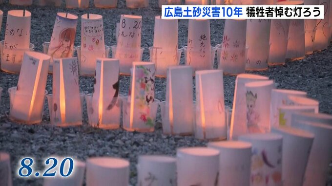 広島土砂災害から10年を迎えた8月20日、広島市安佐南区では住民らが集まり、灯ろうに火を灯して犠牲者を追悼しました。