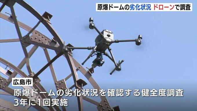 広島市は、来月の上旬まで大型と小型のドローンを使って原爆ドームの内観と外観を数千枚撮影し、今年度中に状態の結果を出すということです。