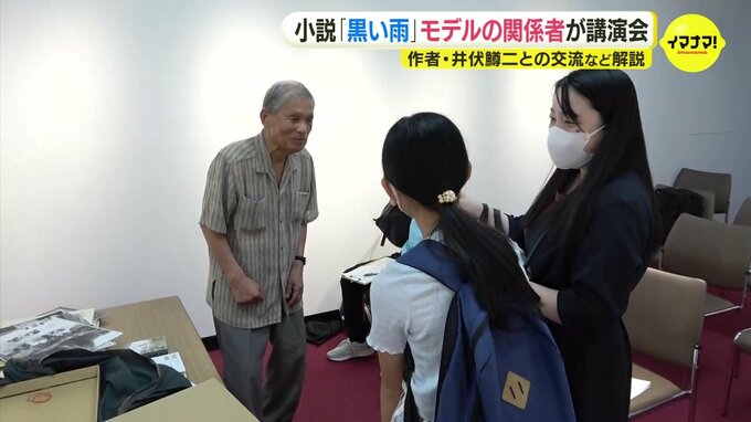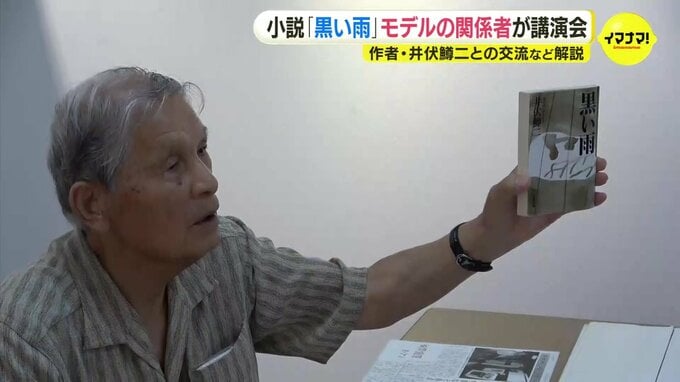 講演したのは神石高原町の重松文宏さん88歳です。重松さんは井伏鱒二の小説「黒い雨」の基になった日記の著者、重松静馬さんの義理の息子です。静馬さんは黒い雨の主人公のモデルにもなっています。