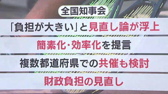 選手たちにとっては大きな大会です。なぜ全国知事会でこういう議題に挙がるかというと、やはり費用の問題です。負担が大きいです。直近のデータでいいますと、岩手国体100億円とか栃木国体177億円で、ことしあります佐賀の国スポですけれども一般会計予算が105億円組まれていると。けっこう負担が大きいんです。