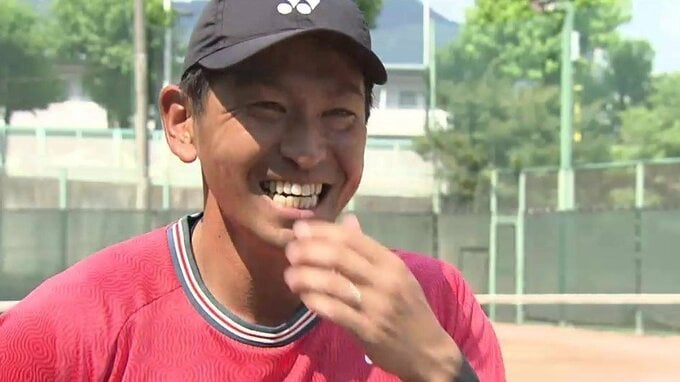 「(このサーブは)ぼくがやっていたんです。それを上松選手が “パクって” 、あっちの方が威力がでちゃったので、上松選手の武器になっちゃいました(笑)。ヒントはぼくが年末、埼玉の高校にテニスの講習会に行ったんですけど、そこで1人、ジャンピングサーブをする高校生がいて、『それ、いいな』と思って、おれもやってみるわって」