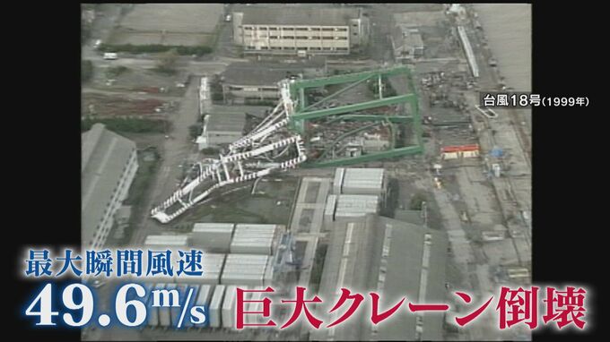 暴風によって工場にある巨大なクレーンが倒壊したのは1999年の台風18号です。広島市中区で50m/s近い最大瞬間風速を観測しています。