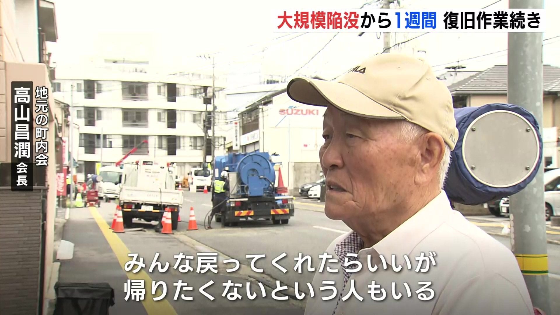 陥没は、先月26日に発生しました。けが人はいませんでしたが、ひび割れや傾きなど少なくとも11棟に被害が出て、現在も避難所やホテルなどに24世帯44人が避難しています。