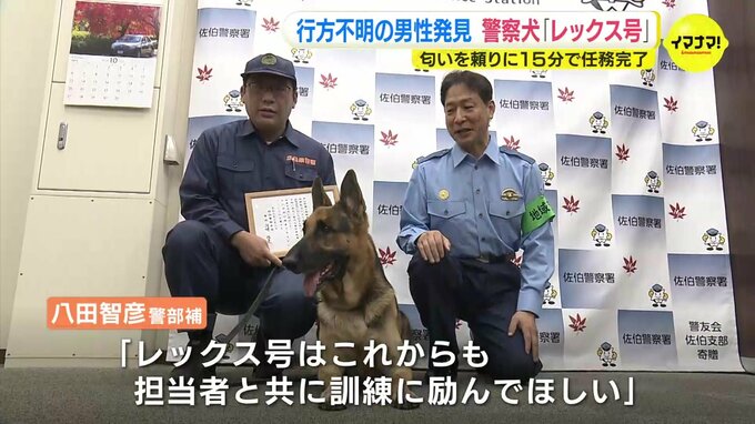 警察犬係の八田警部補は「行方不明者の捜索には警察犬の能力が有効。レックス号はこれからも担当者と共に訓練に励んでほしい」と話していました。
