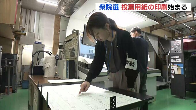 9日に印刷されるのは「小選挙区」用の水色の投票用紙、およそ232万枚です。県選挙管理委員会の職員が立ち会い▽紙の汚れや▽印刷にムラがないかなどを入念にチェックしていました。