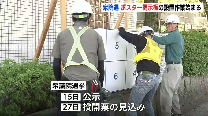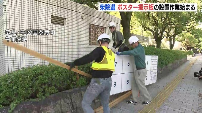 広島市によりますと、掲示板は通常、衆議院が解散してから設置しますが、公示日の前日となる14日までに市内2040か所、全ての設置が間に合うよう、今週から作業を始めているということです。