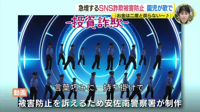 踊っているのは安佐南署の警察官5人。被害防止を訴える歌は、子どもの声のほうが耳に残りやすいと、安佐南区にある梅林よつば保育園の園児が歌いました。8日、歌った園児たちおよそ40人に感謝状が贈られました。
