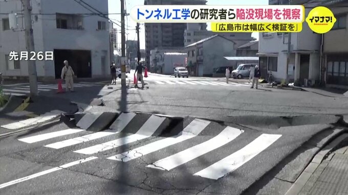 9月、広島市西区の道路で起きた大規模な陥没で、トンネル工学や地質の研究者らが現地を視察しました。広島市に対して、幅広い角度からの原因究明を求めています。