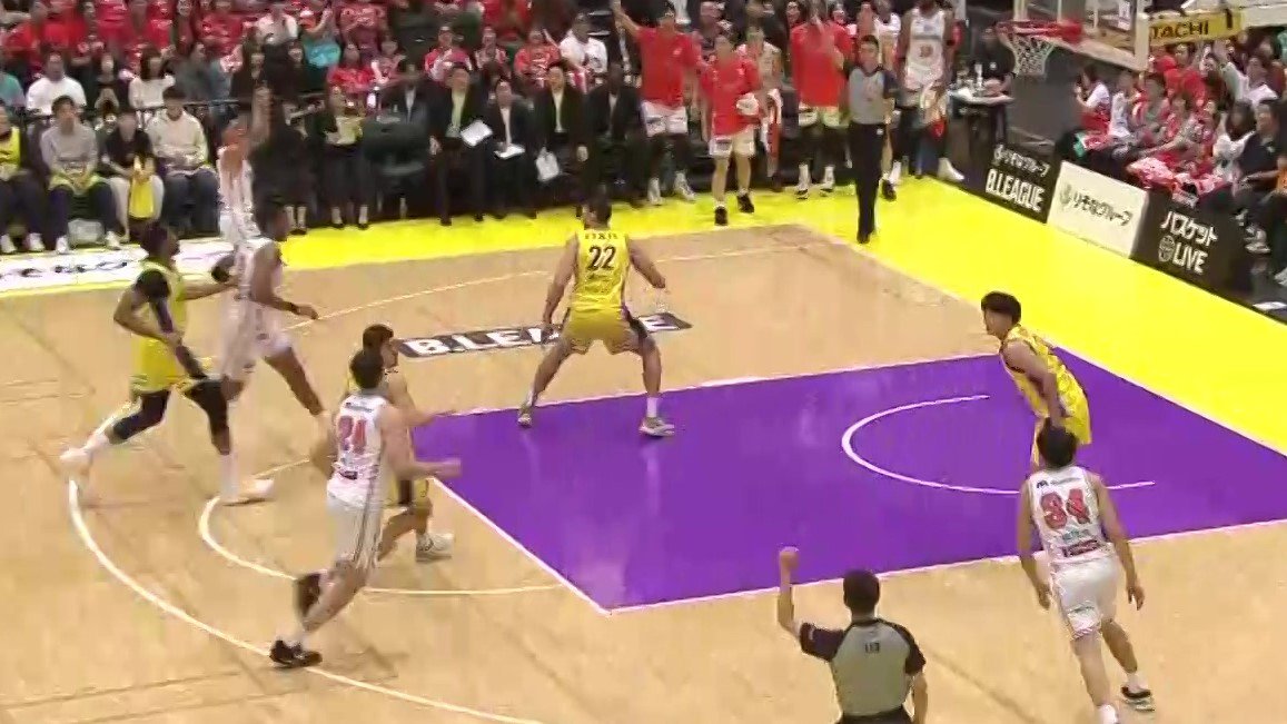後半に入っても中村が超深い位置からのディープ3を決めて、16得点を挙げる活躍。その後もメイヨが2本目の3ポイントを決めるなど、最大22点差をつけ、試合を有利に進めます。