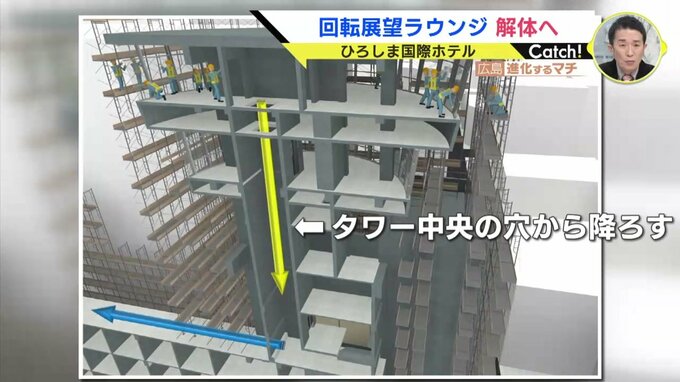 桑原組山本事業部長「展望レストランは、四角く座を組んでいくような形で、隙間がないように足場は、まわり全部囲んだような状態。基本的には人力で、回転レストランに関しては壊していくと言うことです」
