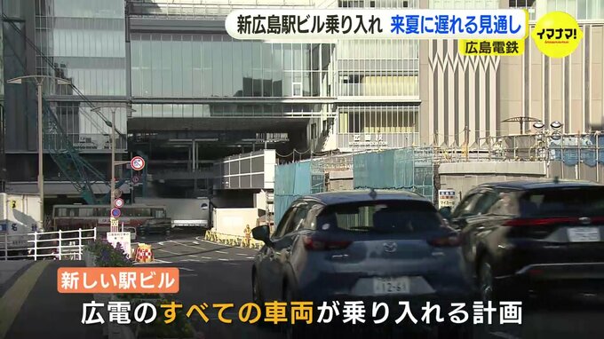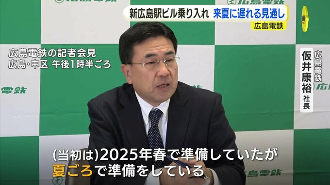 広島電鉄の 仮井康裕 社長は13日、JR広島駅の新しい駅ビルへの乗り入れ時期について当初の来年春から、夏ごろになる見通しを示しました。