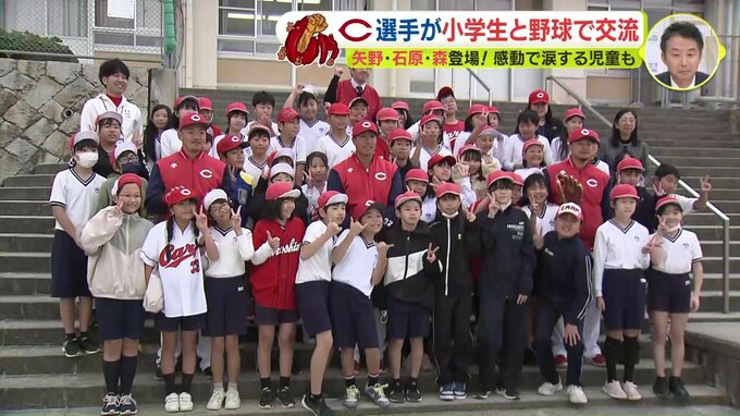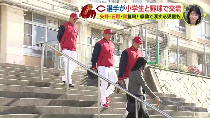 “赤ヘル先生” が、自分たちの学校に!? 広島市内の小学校に広島カープの人気選手3人が登場し、広島市教育委員会主催の「DOスポーツ指導者招へい事業」の一環として、51人の小学5年生と交流しました。