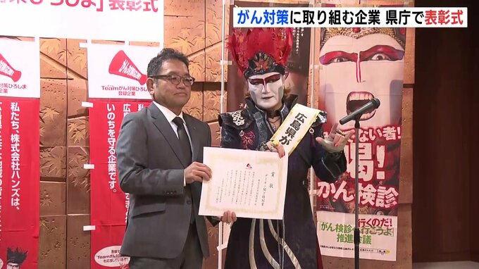 県が推進している「チームがん対策ひろしま」の表彰式には”検診啓発特使”のデーモン閣下も出席しました。